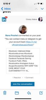I do. BUT, I don’t have a Facebook anymore. bc, it was hacked, locked, and stolen. 16 years of my life, and my husband, who passed. The last link I had to him. Our photos, videos, and sweet messages. My therapist and grief group. 37 emails and 21 days of begging Meta and Facebook to restore my account that is linked to my oculus and Instagram!!! You can’t verify my identity I sent my birth certificate, driver’s license, voter registration, passport, social security, insurance card, 2 pieces of mail, and marriage certificate. My location has NOT CHANGED, BUT my IP address did; from a Lifetime in FLORIDA to Nimbia!!!! Really!!! So, I have written an article and I plan to advertise as much as I can the security breach that you, META, FB, and IG definitely have. The fact that someone is impersonating Meta tech support and Facebook will NOT RESPOND. Be careful people. Telegram has @officialmetasupport. 21 days of desperation and zero response. A Meta employee from LinkedIn gives you a link; you tend to believe them. I am heartbroken. I am agoraphobic and Facebook was my lifeline to my mental health professional and grief group. My connection to the outside world. I begged and pleaded for help and was ignored. I have everything documented and an article to the press. No way I can live this life and do my job without Facebook. I am in PR, Influencer, and Social media. I have NOT had income for 3 weeks bc I can’t do my job. I’m falling behind and digressing by the minute. I have nothing left. My last link to my dead husband, I can’t imagine having a new Facebook after 16 years and his popping up in “people I may know”, and all my friends able to look at memories and post “miss you” messages. This is hell, and I don’t want to be in it! Peace.